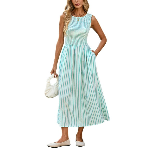 Vestido midi YEXPINE a rayas sin mangas Swing A Line Blue para mujerVestido YEXPINE a rayas para mujer, sin mangas, midi, verde