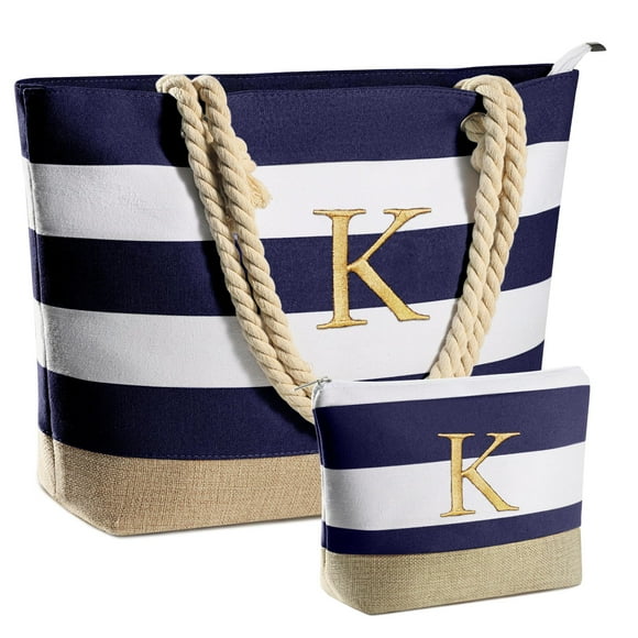 Bolsa de playa YOOLIFE Initial K azul para mujer, regalo de NavidadBolsa de Playa YOOLIFE Personalizada - Bolsa Tote Esenciales para la Playa y la Piscina