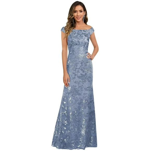 Vestido para madre del novio YXFDKZIB, cuello redondo, sirena, azul 8