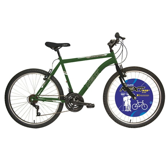 Bicicleta Next Tipo Montaña Rodada 29, 18 Velocidades Verde / Negro Frenos "V" con Cuerpo de Acero