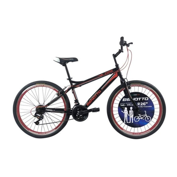 Bicicleta De Montaña Rodada 26 INFINITÉ IF-MTB26Bicicleta Benotto Cypher Tipo Montaña Rodada 26, 21 Velocidades Negro / Rojo DS DFD 21V con Cuerpo de Acero