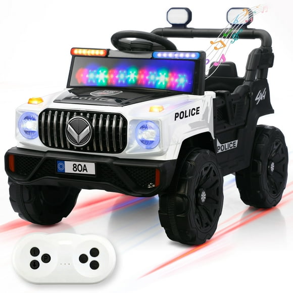 Kids House Carrito Electrico Montable para Niños Turbo Cruiser, Diseño de Policia, Color Blanco, Carrito de Control Remoto y Manejo Directo, con Luces, Estereo y Pedales FuncionalesCoche eléctrico Zulema Coche eléctrico