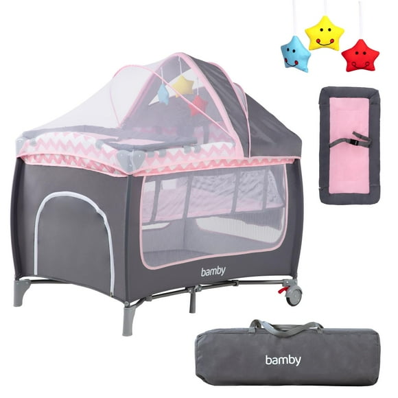 Cuna Para Bebé Corral Portátil Plegable Con Cambiador Gris rosa Grande15 de 5 estrellas. 1 reseñas