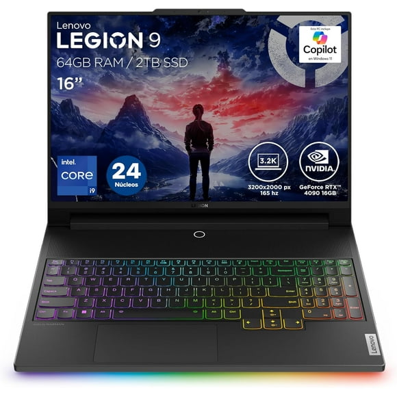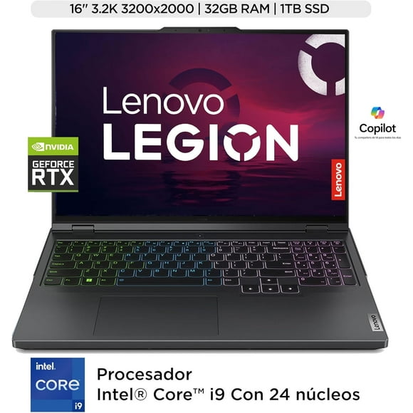 Lenovo Laptop Gaming Legion 7 | Intel Core i9-14900HX, 64GB RAM DDR5 1TB SSD, NVIDIA GeForce RTX 4070 8GB | 16" 3.2K, 24 Núcleos| Teclado Retroiluminado RGB, Windows 11 Home, Teclado Español.Laptop Gamer Lenovo Legion 9 16IRX9 Intel Core i9-14900HX | RTX 4090 16GB | 64GB RAM | 2TB SSD | Pantalla Mini LED 3.2K 165Hz | Teclado RGB En Español | Windows 11 Home