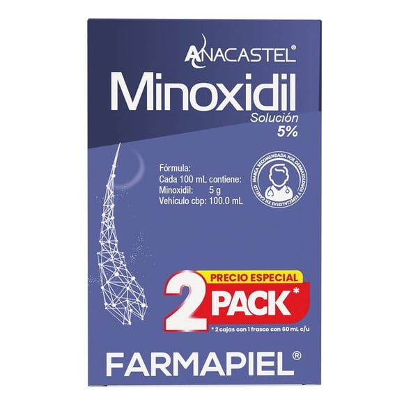 Pack solución tópica Anacastel Minoxidil 5 % 60 ml c/u, 2 pzas