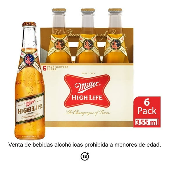 Cerveza Miller High Life 6 pack 355 ml c/u+18 años