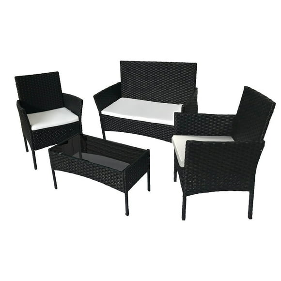 Ilios Innova Juego de Sala para jardín de 4 piezas fabricado en Mimbre sintético, Set para exteriores 3 Sofás con Asiento Acolchado y Mesa de Vidrio (Sala-4p) ilios innova mueble de mimbre sintético (Negro)