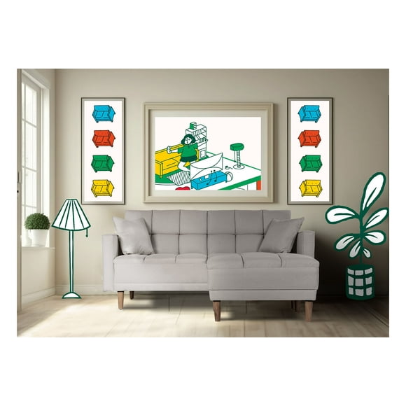 SALA INOVA IZQUIERDASala Modular Sofá Cama Reversible De Lino Gris Claro Modelo Mykolo