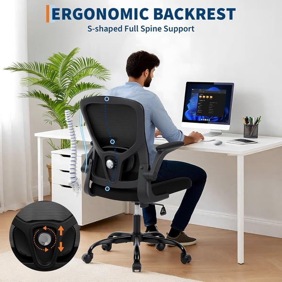 Silla Directiva Ergonomica TITANO Ajustable Soporte Lumbar de MallaHistoryli Silla ergonómica giratoria de oficina,respaldo medio de malla,altura ajustable,brazos abatibles y soporte lumbar,color negro.
