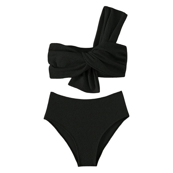 Traje de baño de mujer Sunnimix con pantalones CortosMKLEKYY Trajes De Baño Mujer Short Women'S Shoulder High Waist Gathered Solid Color Split Swimsuit
