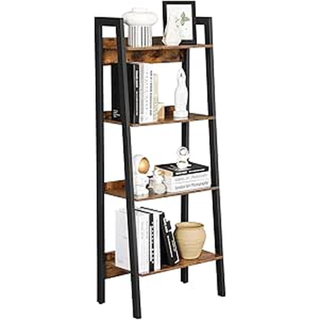 VASAGLE Estantería de Escalera, Estantería para Oficina en Casa de 4 Niveles, Montaje Sencillo, para Cocina, Salón, Dormitorio, Balcón, Marco de Metal, Industrial, Marrón Rústico y Negro