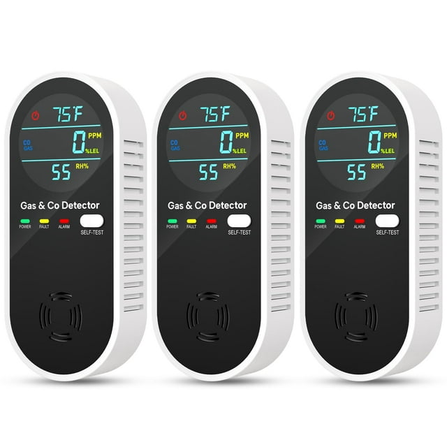 Detector de fugas de gas y monóxido de carbono NICGOL 4 en 1 (3 paquetes)
