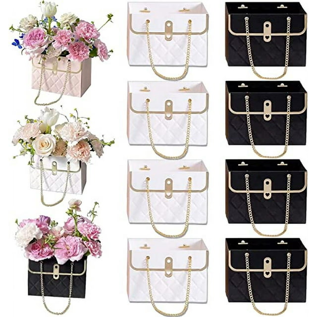 Xiao Hua 8 cajas de regalo de papel con flores, bolsas para ramos, cajas de flores con asa, cajas para arreglos florales, bolsas para envolver regalos de boda y San Valentín (blanco y negro)