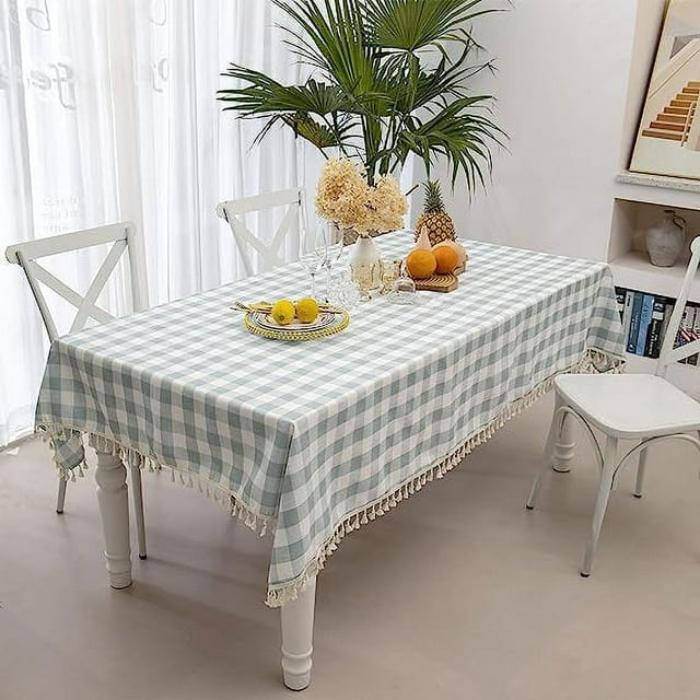 Nvzi Mantel rectangular a cuadros, mantel de lino de algodón resistente y antiarrugas,verano, picnic, cocina, cena, restaurante, fiesta al aire libre (55 x 84, aguamarina)