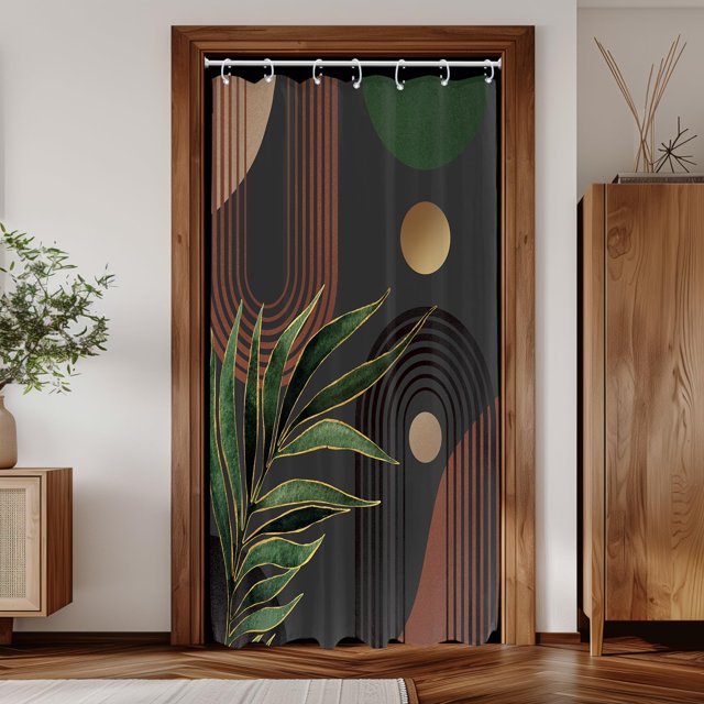 Cortina de ducha Glawry, poliéster, 90 x 180 cm, verde oscuro, marrón, bohemio
