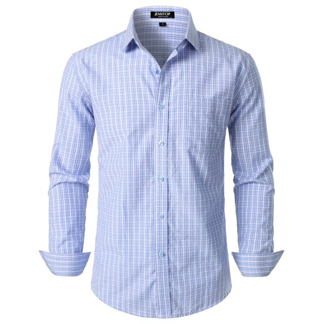 Camisa JEMITOP para hombre, manga larga, corte ajustado, a cuadros, azul claro, talla M