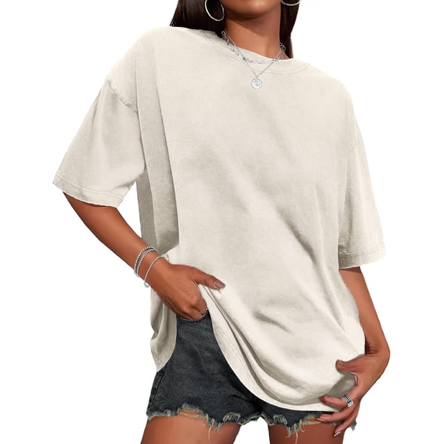 Camiseta Adorejoy de gran tamaño, vintage, lavada, holgada, casual, para mujer