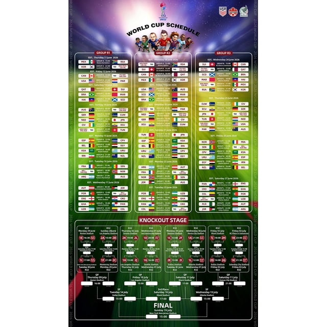 Póster del Mundial de Fútbol 2026 120x70 cm, calendario de 48 selecciones