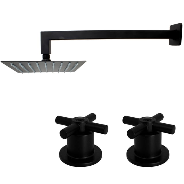 Regadera Cuadrada de 20cm Negro Mate con Brazo Cuadrado y Manerales M08N