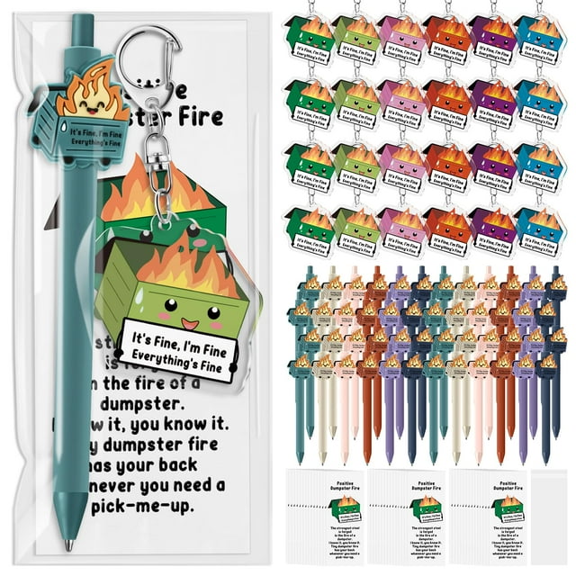 Divertido set de regalos Dumpster Fire Sayglossy con bolígrafos y llaveros
