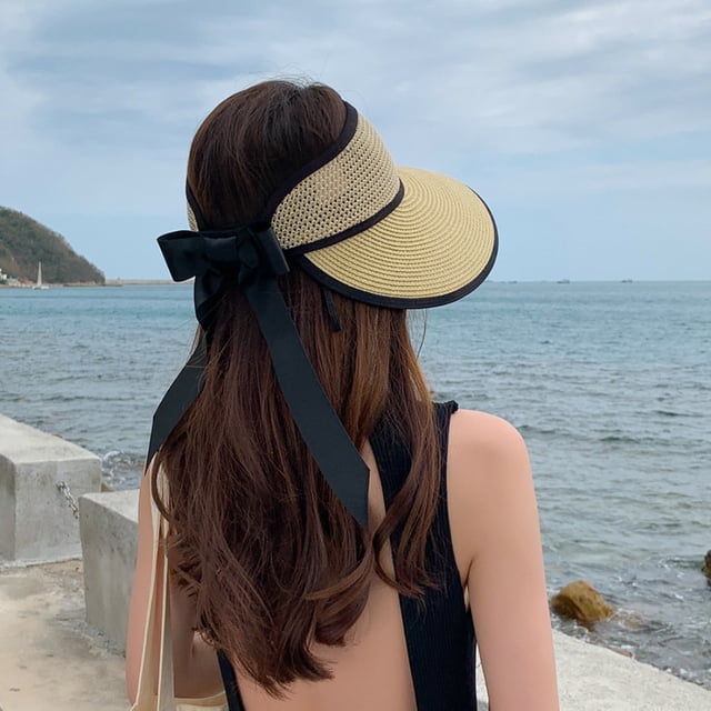 Viseras de paja plegables para mujer, protección solar, ala ancha, sombrero para el sol con lazo, tapa vacía, sombrero de playa de verano transpirable