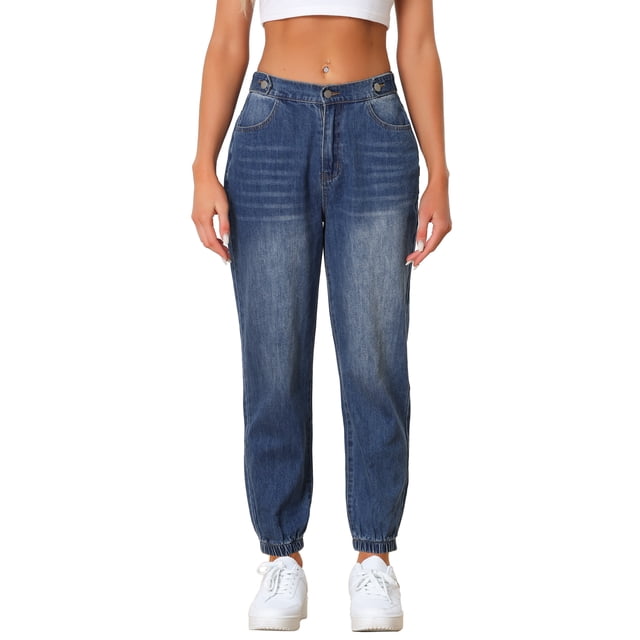 Pantalones de mezclilla elásticos de cintura alta para mujer Daring Diva, jogger, tamaño XS, color azul