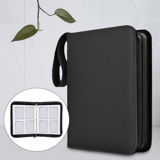 Soporte resistente para exhibición de álbumes fundas protectoras con cremallera 400 Tarjetas carpeta de bolsillo para Tarjetas 400 Negro Hugo