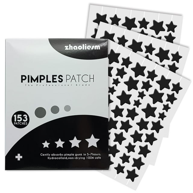 Black Star Parches para espinillas para la cara 153 unidades Parches hidrocoloides para el acné en forma de estrella Lindas cubiertas para espinillas para pegatinas de manchas faciales con ácido salic