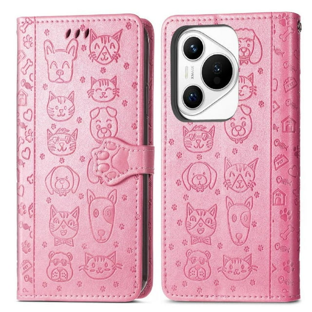 Funda Cartera FOXDOCK para Huawei Pura 70 Pro , Flip PU con Relieve de Gatos y Perros, Tarjetero y Soporte