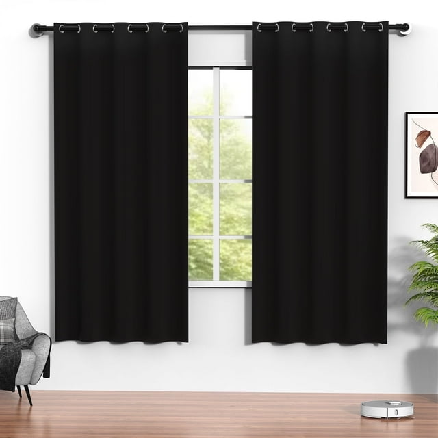 Blackout Cortinas, Juego de Cortinas Negras de 52 x 72 Pulgadas con 2 Paneles, Cortinas Térmicas Aislantes Que Oscurecen la Habitación para Recámara, Cortinas de Protección de Privacidad para Sala de