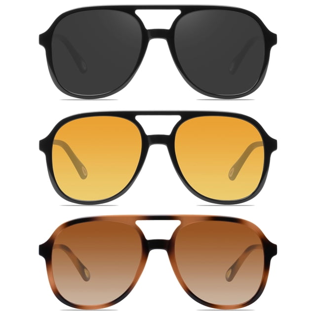 YDAOWKN Gafas de sol de aviador cuadradas retro para mujer y hombre, gafas de sol vintage de los años 70 con doble puente