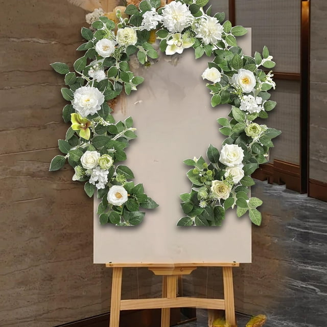 Guirnalda de flores artificiales de rosas de 1,8 m, guirnalda floral decorativa con vegetación, guirnalda de flores artificiales para fondo de mesa de compromiso