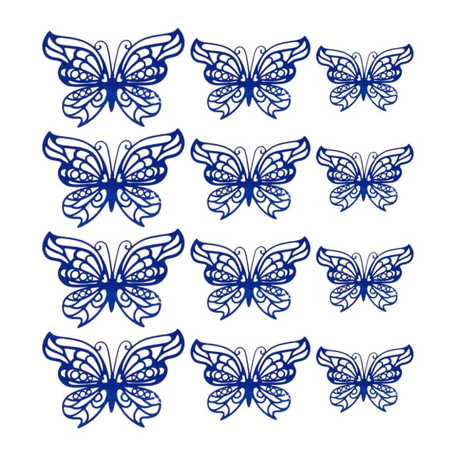 12 piezas de pegatinas de pared de mariposa huecas 3D Strade Fareast Limited Azul 3 tamaños