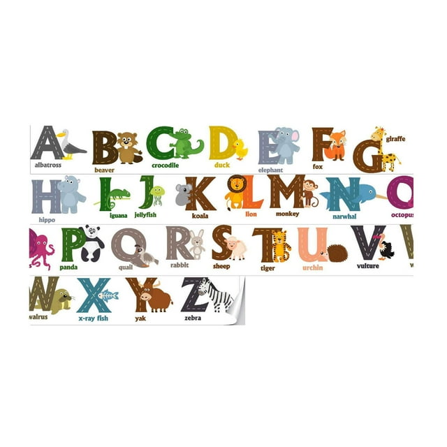Vinilo decorativo de pared con estampado animal para zócalos de habitaciones infantiles, dormitorios y salas de estar. Alfabetos