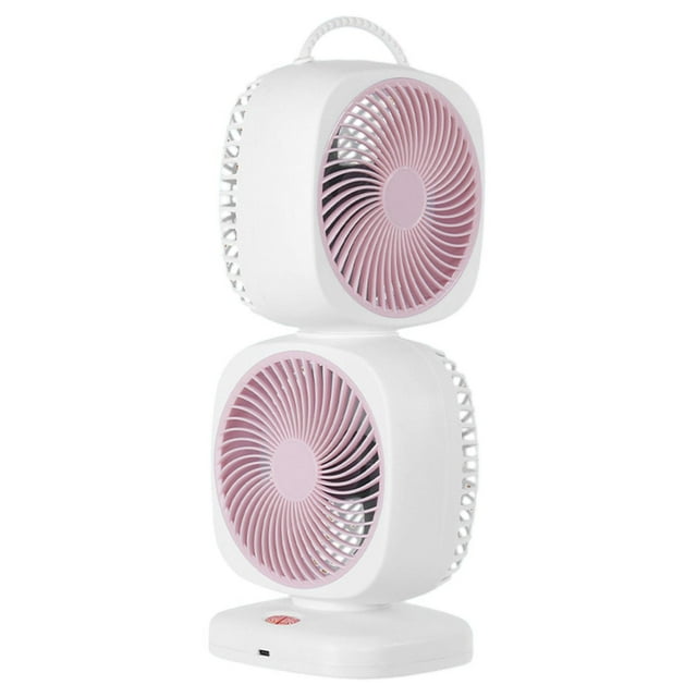 Ventilador giratorio de doble capa, 5 velocidades, ajustable, práctico y compacto, portátil para escritorio. Rosa