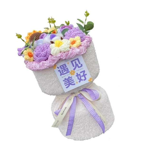 Flores de punto de girasol, regalo para el Día de la Madre, flor decorativa tejida a mano Púrpura