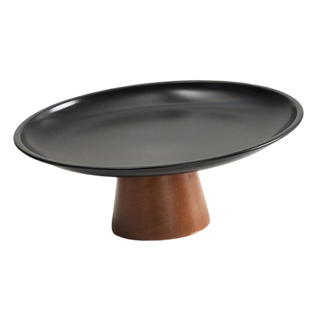 Frutero con pedestal, plato de fruta redondo, portátil, versátil, con base de madera, bandeja para servir comida para decoración de encimera de M