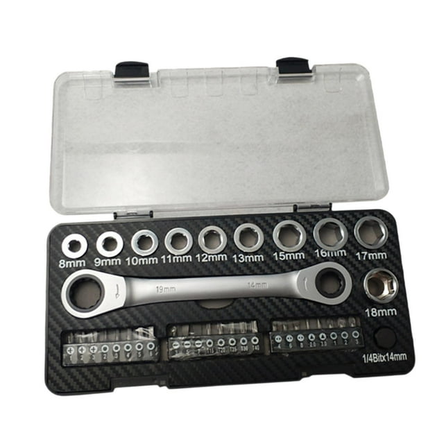 Juego de llaves de trinquete de tubo métrico de 36 piezas Llave de 14 mm y 19 mm para apretar y aflojar tornillos Liberación rápida resistente