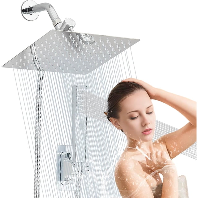 Regaderas para Baño, Cabeza de Ducha de Lluvia Alta Presion y Ducha de Mano de 2 Modos Rociado Ajustable con Soporte, Antifugas, Manguera Plata Regaderas y Baño