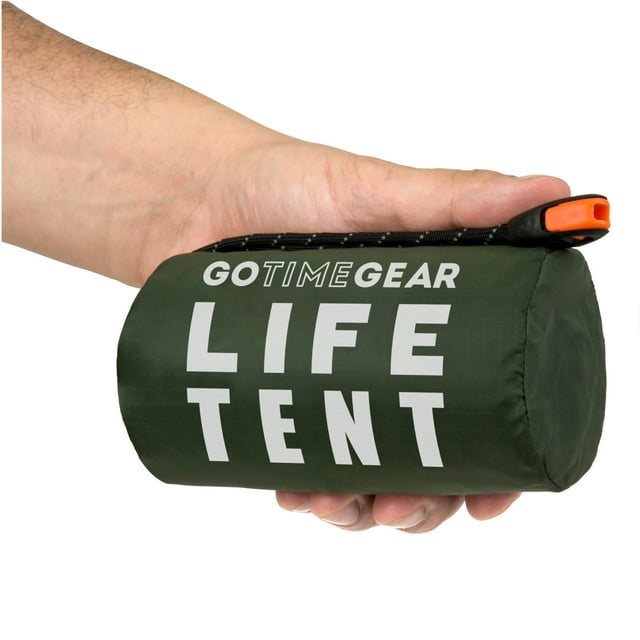 Go Time Gear Tienda de campaña de supervivencia – Tienda de supervivencia de emergencia para 2 personas con paracaídas – Tienda de campaña con tubo de refugio, protección para todo tipo de clima, para