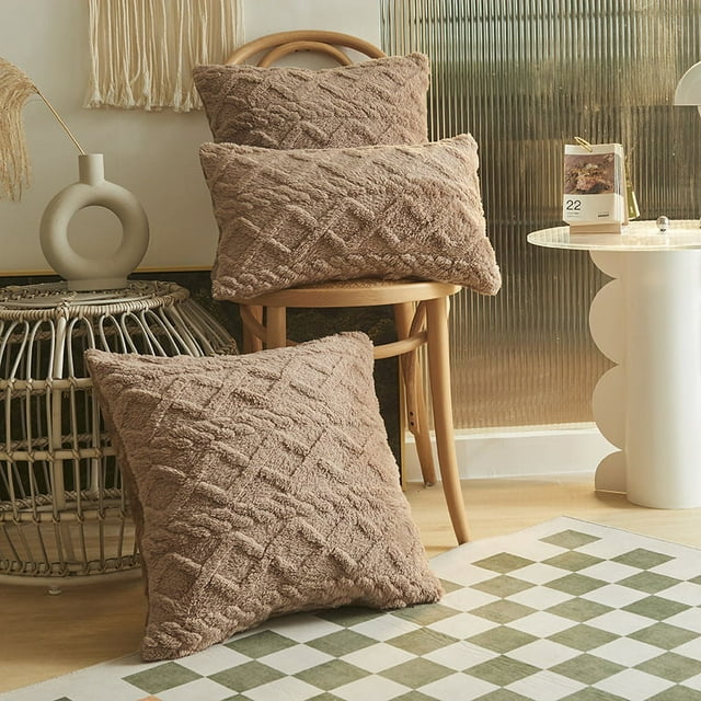 Xiao Hua Funda de cojín geométrica de felpa, funda de almohada para la cintura, funda de almohada para sofá sin núcleo, funda de almohada a rayas, 11 x 19 pulgadas, color caqui