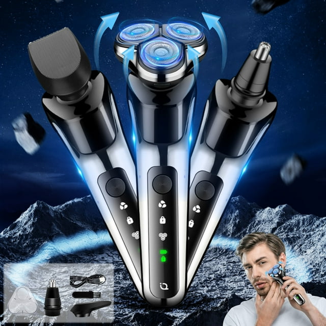 Afeitadora eléctrica para hombre 2024 | Maquinilla de afeitar recargable en seco y húmedo | Pantalla LED | 3 cabezas flotantes | Carga USB | Resistente al agua IPX7 | Cara y cuello | Cuchillas de