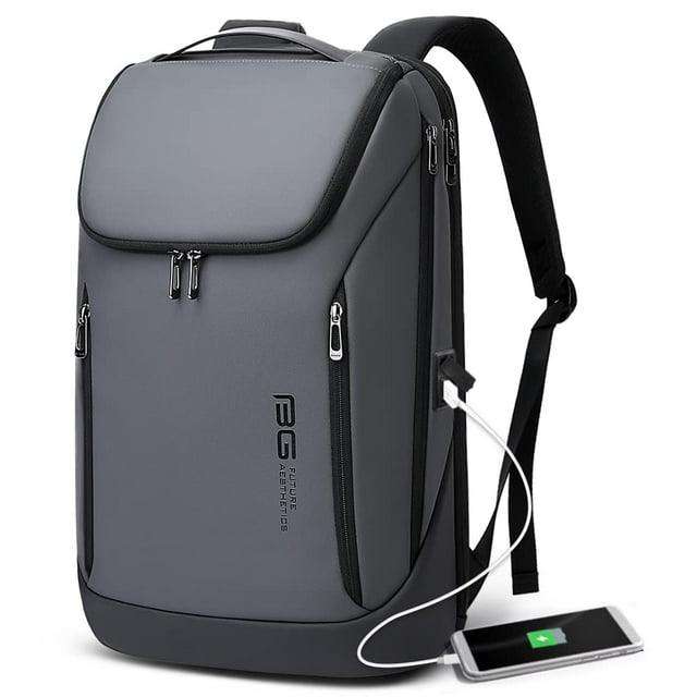(Gris)Mochila para portátil de negocios para hombre Mochila con puerto de carga USB, mochila resistente al agua.