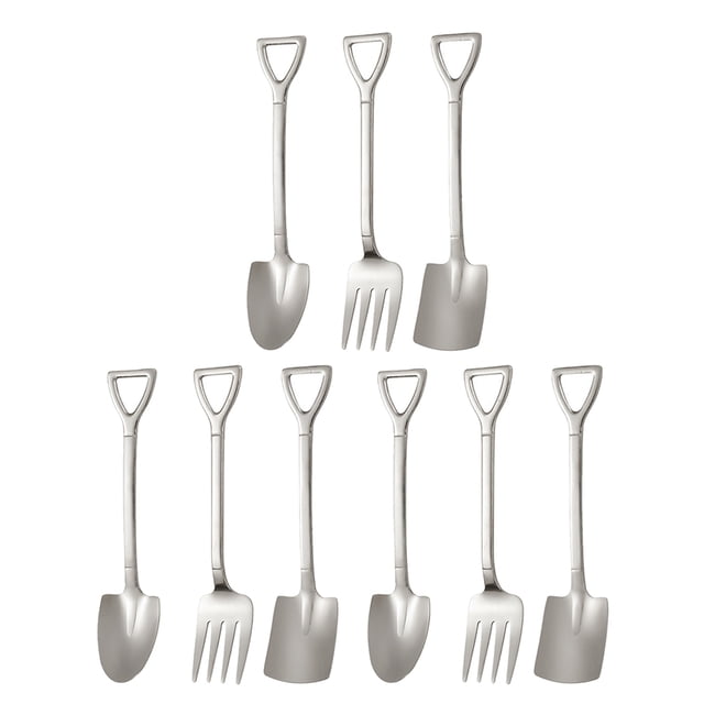 9 cucharas de acero inoxidable con diseño de pala, cucharas de postre, tenedores de postre, artículos para el hogar