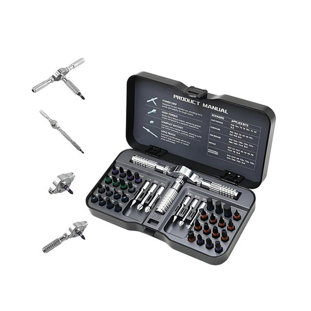 Juego de destornilladores de trinquete | Destornillador multipunta 40 en 1 con mango de trinquete | Acero de alta dureza para mantenimiento y desmontaje