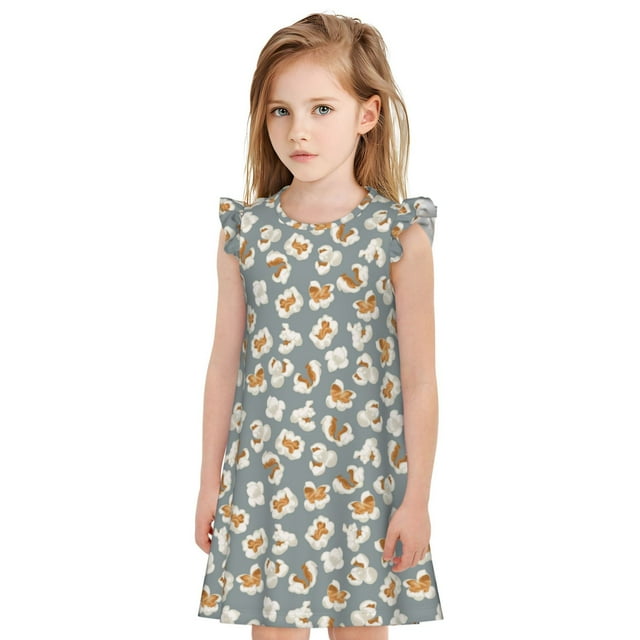 Fotbe White Popcorn Vestido de Dormir para Niñas de 3 a 10 Años, Mangas Cortas, Estilo Princesa, Pijama Camisón con Mangas Voladas-Medium