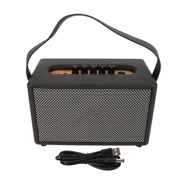 Leather Vintage Bluetooth Speaker Portable Heavy Bass Music Player Wireless Speaker for Outdoor Performance Party Black