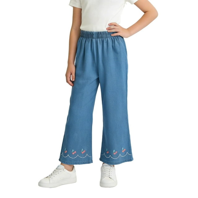 Pantalones largos de verano para niñas, finos, anchos, informales, versátiles, de seda de hielo, de mezclilla, sueltos, recortados, pantalones de poliéster para niños