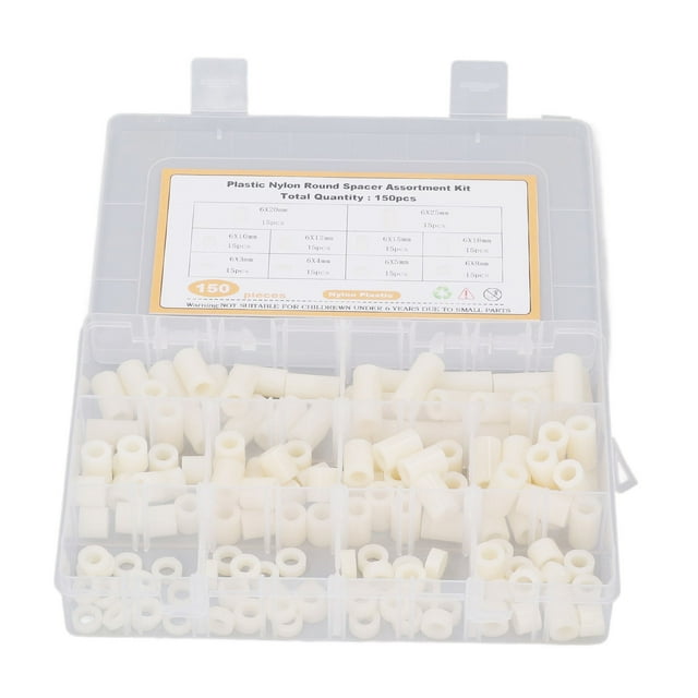 Juego de 150 espaciadores de tornillos de nailon para montaje redondo, color blanco