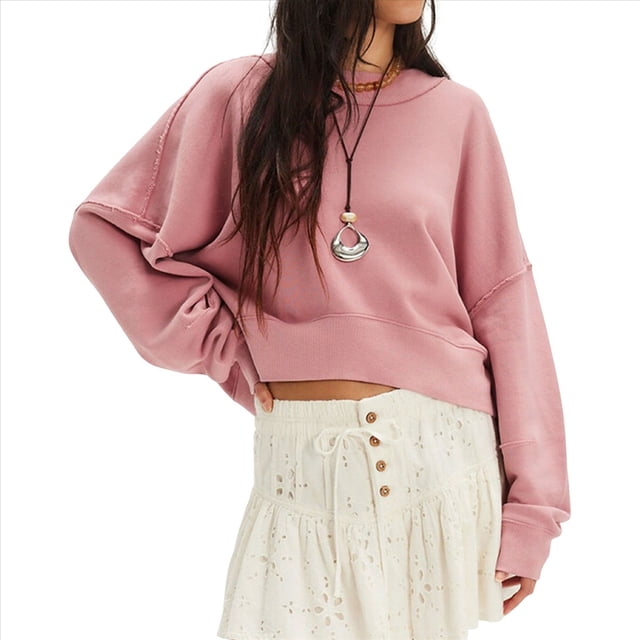 Sudadera Corta de Larga con Cuello Redondo para Mujer, Lindas y Holgadas. Rosa XL